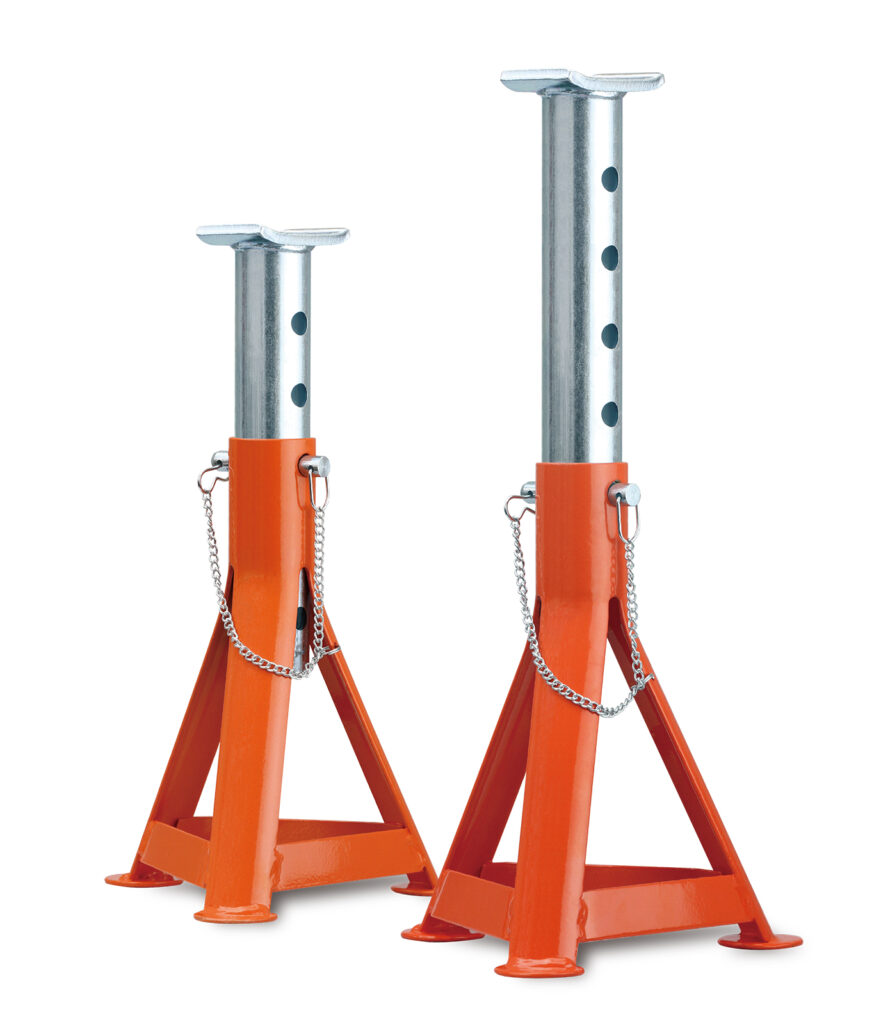 持ち上げた車体を安全に支える | 耐荷重は余裕を持つ。ロック機構付きで安心。2基セットで使用する。 |
