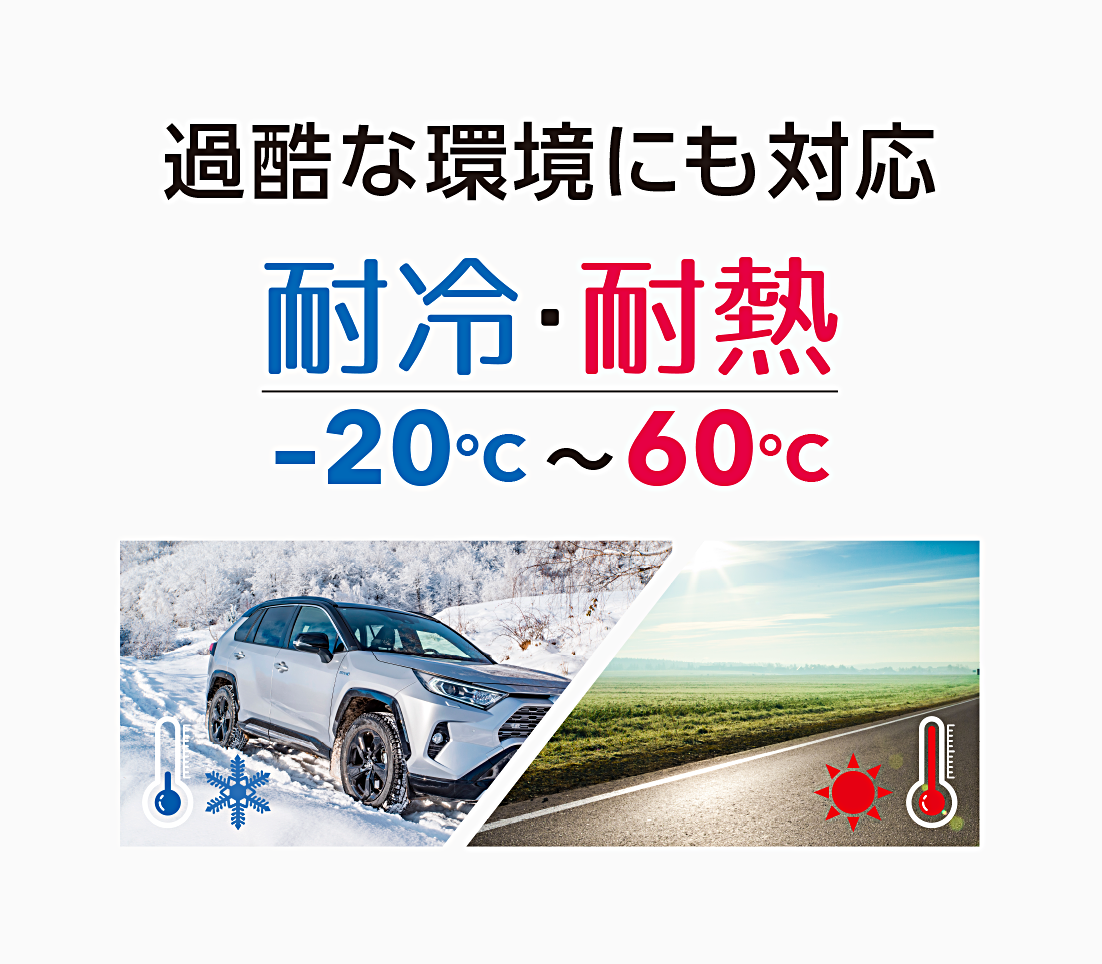 ・高温、低温時にも強い(-20℃〜60℃動作可)