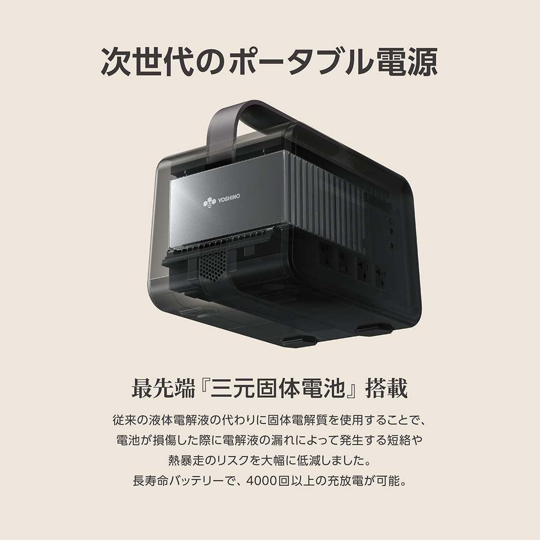 ■ 長寿命バッテリー:4000サイクル(容量80%)