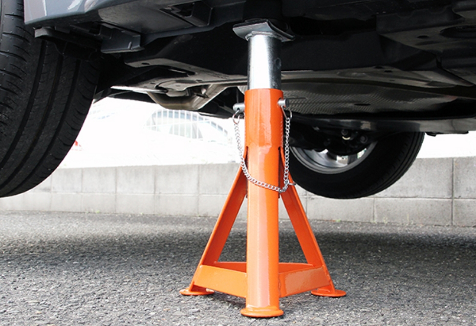 ジャッキスタンドは、車両を持ち上げた状態で安全に支えるための補助器具です。油圧ジャッキなどで車を持ち上げた後に使用し、作業中のジャッキの突然の滑りや、不意な車体の落下を防ぎ、安全に作業を行うために不可欠なものです。高さ調整が可能で、整備や点検、タイヤ交換などの際に安定した作業環境を作ることが可能になります。