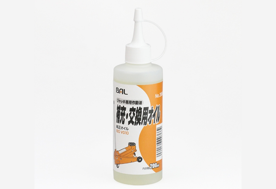 ジャッキオイルは、油圧式ジャッキに使用される専用の作動油です。ジャッキの上下動作をスムーズかつ安定的に行うために欠かせない潤滑剤です。経年劣化や使用によってオイルが減少・汚損すると、ジャッキの動作不良や持ち上げ力の低下につながるため、定期的な補充・交換が必要です。専用のジャッキオイルを使用することで、内部パーツの摩耗やサビの防止にも効果があります。